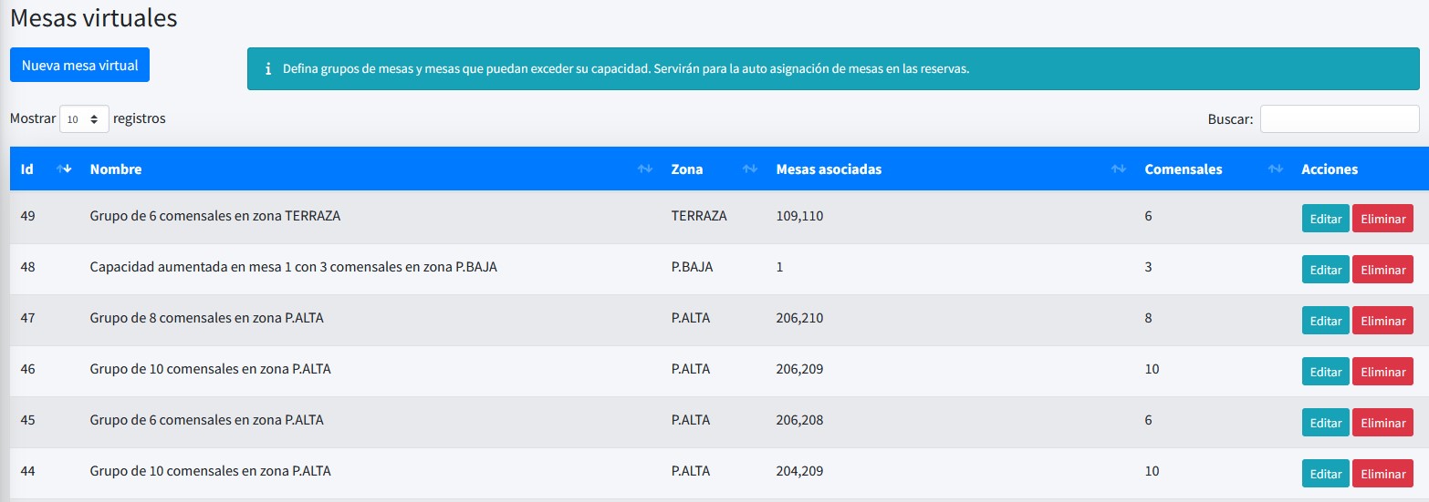 El sistema rellena esta nueva función de mesas virtuales automáticamente cuando manualmente se asigna más de una mesa a una reserva o se asignan más comensales a una mesa de los definidos en su capacidad.